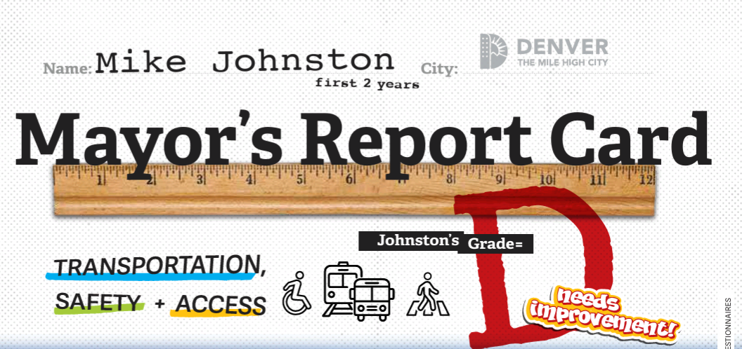 Denver Streets Partnership has issued report cards for previous mayors after a duration into their term. Mayor Hancock received them and now Mayor Johnston has received his first. He was given a D grade after his first two years. Mayor Johnston failed to live up to many of his promises regarding transportation, mobility, climate, and accessibility.