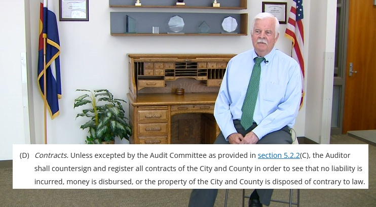 The city municipal code says the auditor must co-sign contracts as a method of checks and balances against the mayor. The mayor decided he didn't need to follow that section of Denver code and proceeded without the auditor.